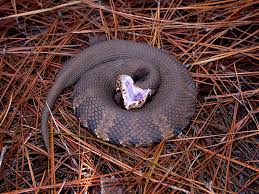 Water moccasins are generally non-aggressive toward humans, preferring to retreat when disturbed. When cornered, however, they exhibit defensive behaviors, including coiling, vibrating the tail, and gaping their white mouths to display a cottony warning. Despite myths portraying them as relentless aggressors, most bites occur when the snake is accidentally stepped on, handled, or provoked. Water moccasins are nocturnal hunters, particularly in warmer months, though they may also be active during cooler days in spring and fall. Their semi-aquatic nature allows them to escape danger by swimming or submerging underwater, where they can remain hidden for extended periods.